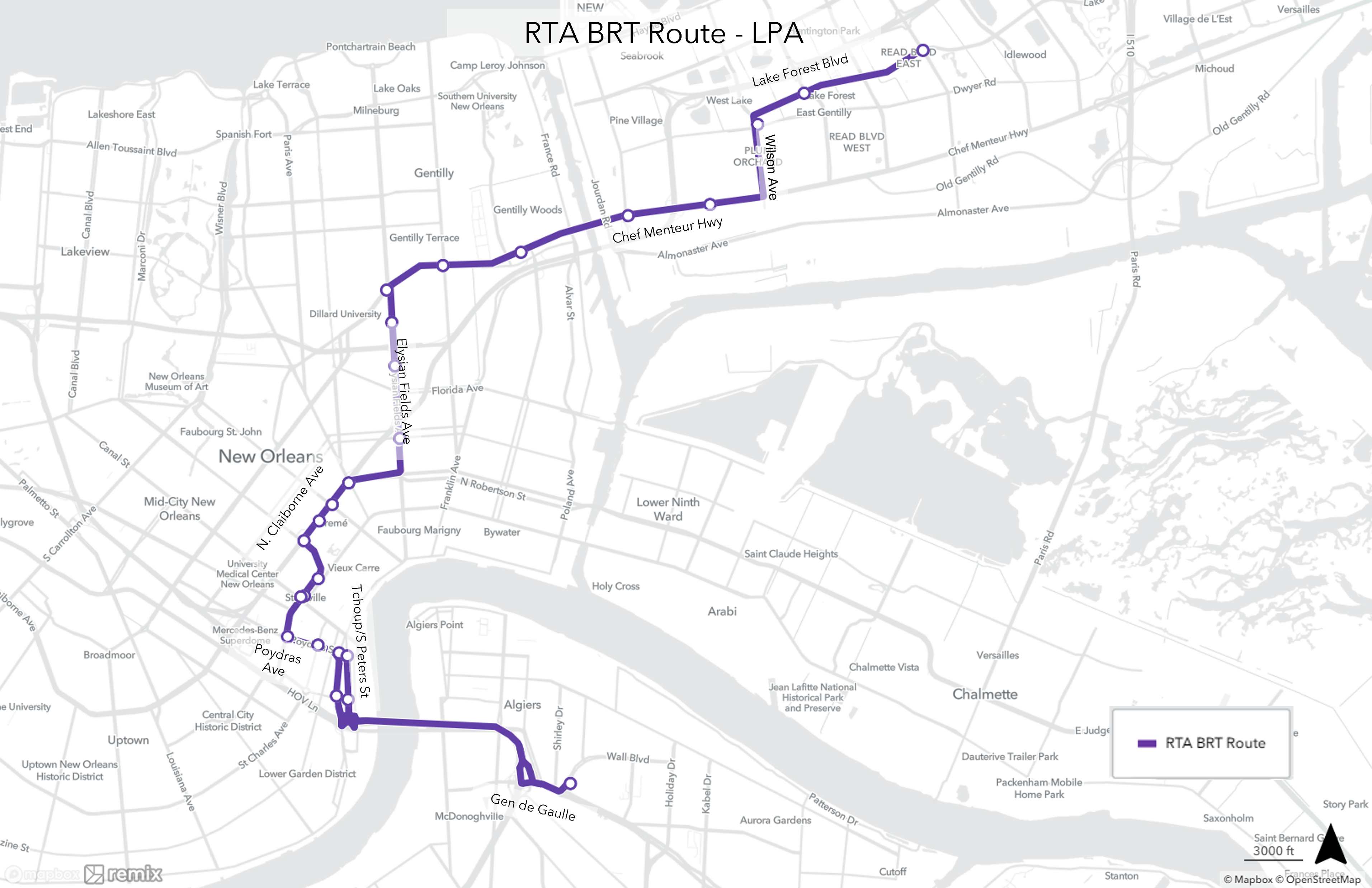 RTA is excited to introduce a new way to roll in New Orleans with Bus Rapid Transit (BRT) service. BRT is a different type of public transportation that provides a fast, efficient, and reliable way to move through the city. BRT service operates like rail service but utilizes modern busses to keep costs down, enabling us to more quickly offer this service to our region’s residents. See more about how BRT works here.